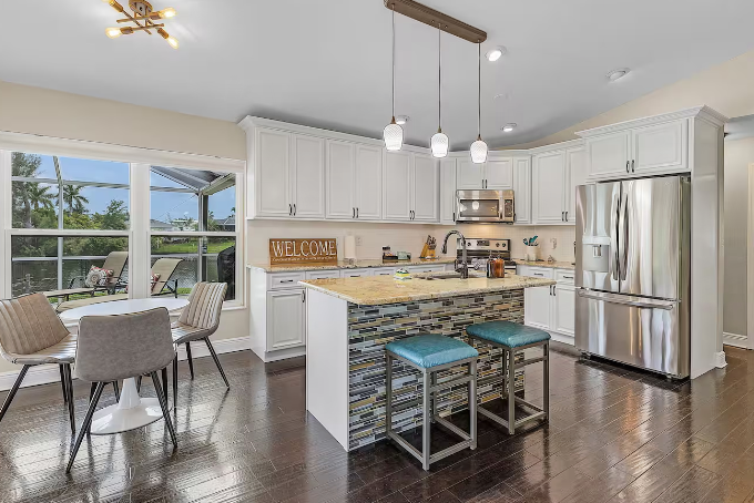 Escape to Turtle Cove and experience the epitome of Florida living. Enjoy breathtaking waterfront canal views from this stunning home featuring a sparkling pool, a private dock for fishing (poles included), and kayaks for exploring. Inside, discover a well-equipped kitchen, a spacious open floor plan, and a relaxing outdoor oasis with a dining area, lounging space, and a cozy fire pit. Unwind with a selection of games, puzzles, and bikes – the perfect escape awaits!